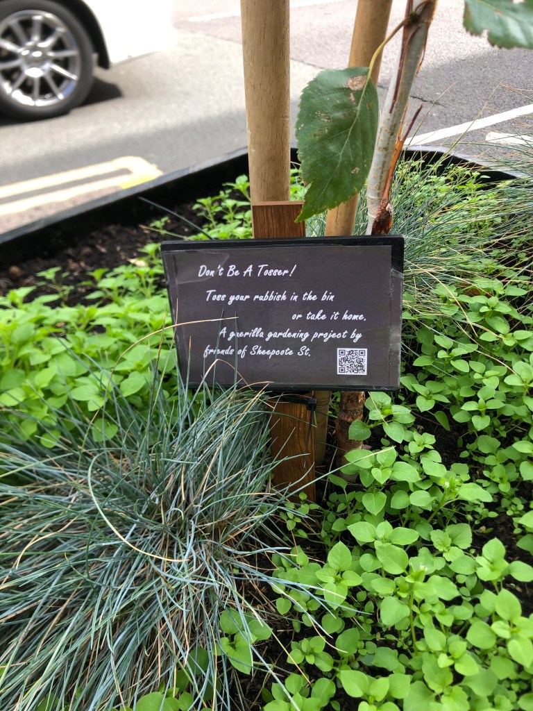 Residents will notice some trees starting to emerge from the planters that the West Side BID have deserted and left as unmaintained rubbish bins. The Broad Street end of Sheepcote Street has some tree cover giving a little character, but further down towards StVincent Street, despite some older buildings and shops, the street has a fairly bare aspect. A bit more tree cover along with a gentle reminder on tossing rubbish into the street wont go amiss and more is planned.